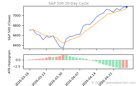 As of April 24, 2026, SPX rose +0.80%. The market is on the low phase of the market cycle, suggesting consolidation or mild stress, and volatility is expanding.